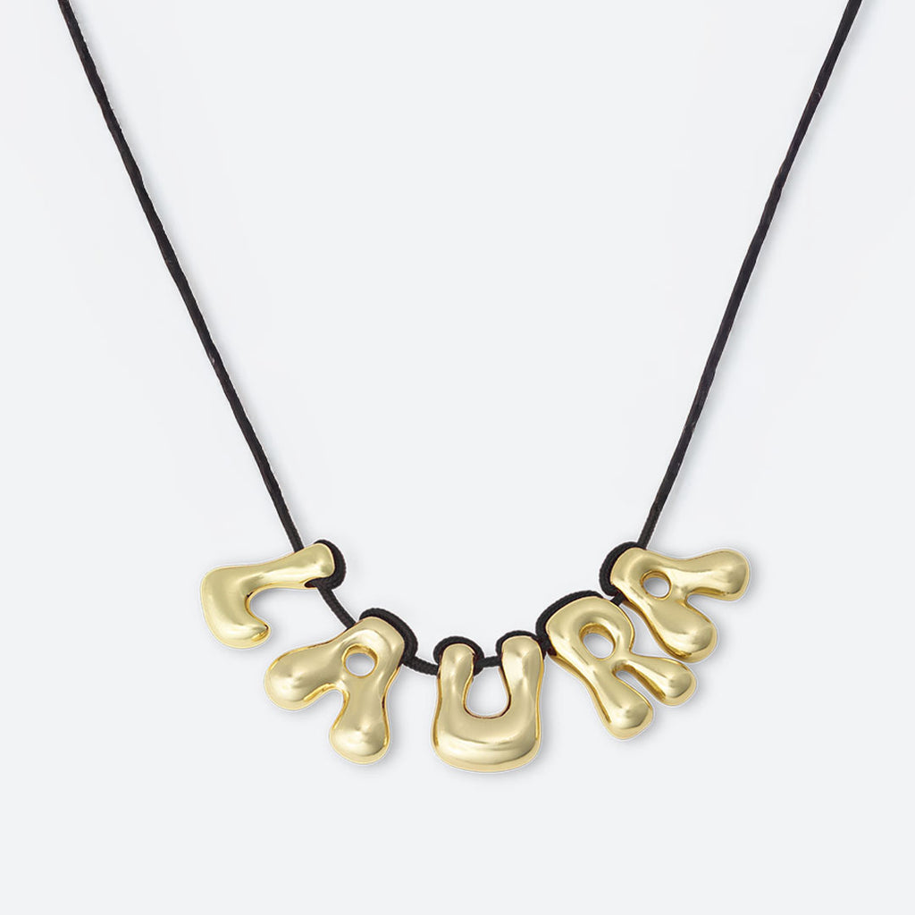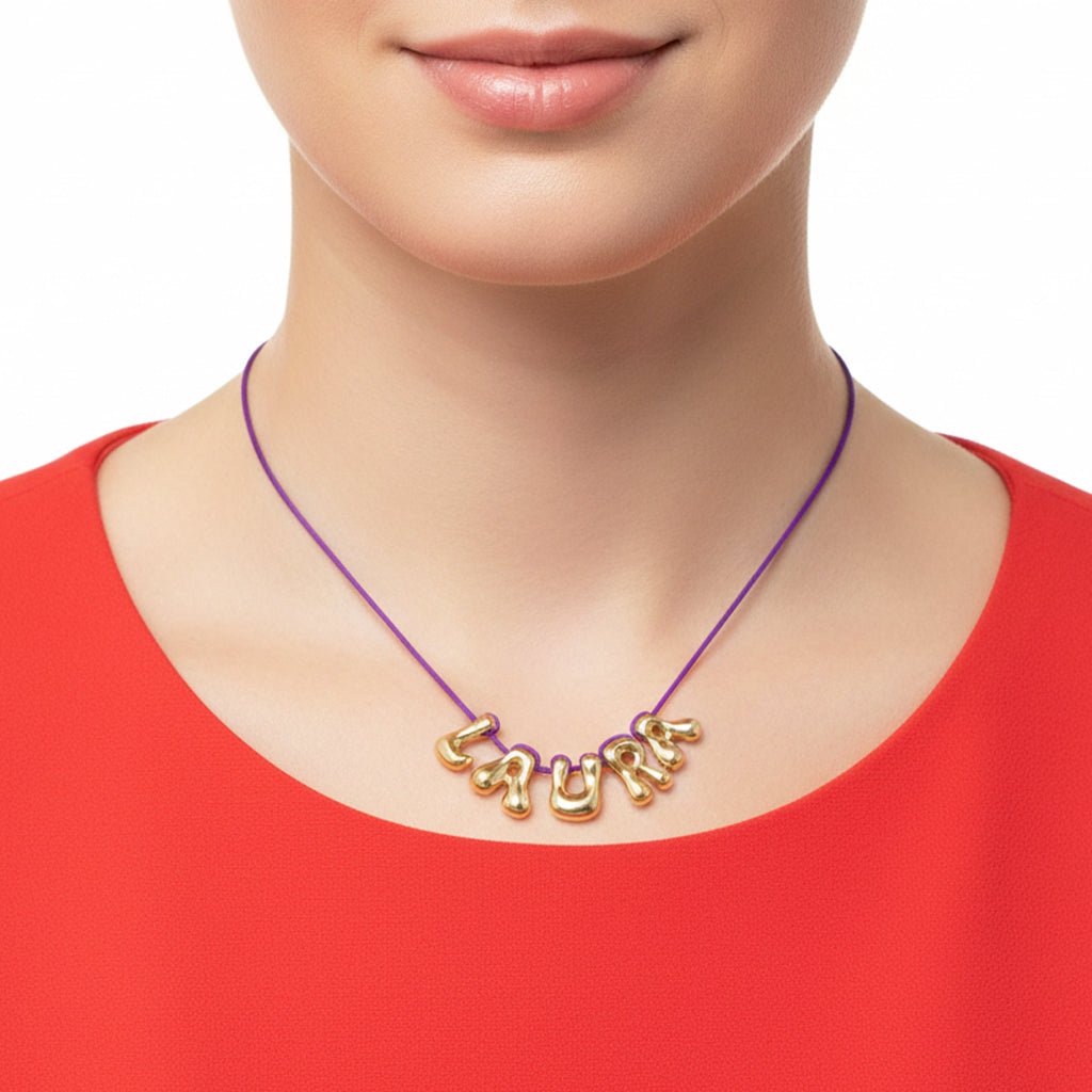 COLLIER AVEC CINQ PETITES LETTRES DORÉES, MONTÉES SUR UN CORDON AJUSTABLE.