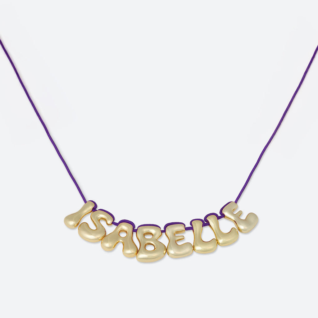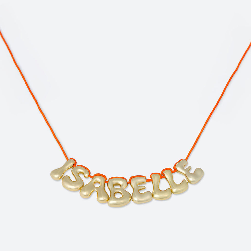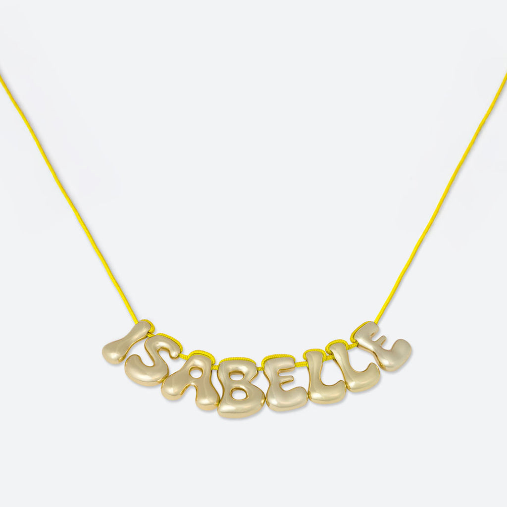 COLLIER AVEC HUIT PETITES LETTRES DORÉES, MONTÉES SUR UN CORDON AJUSTABLE.
