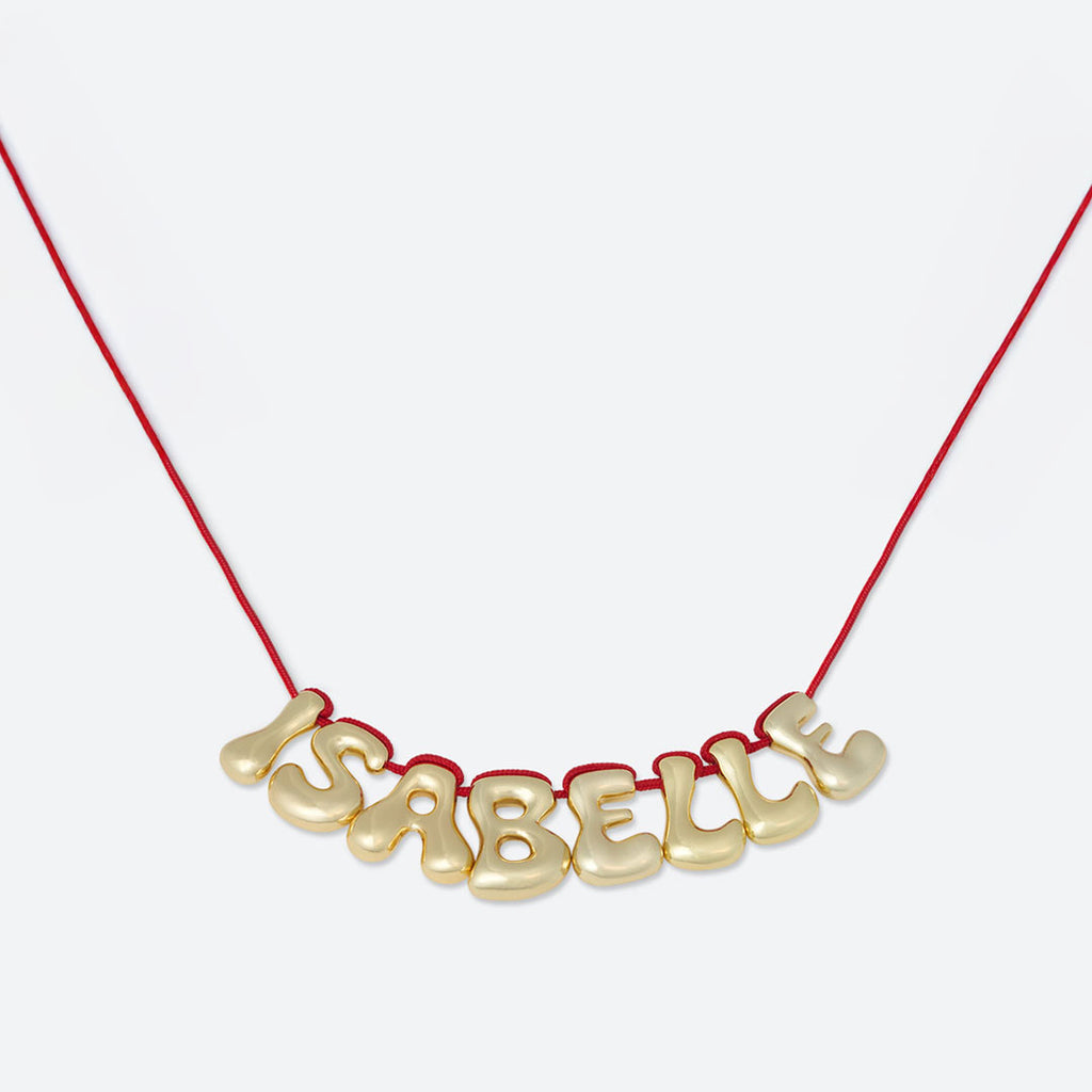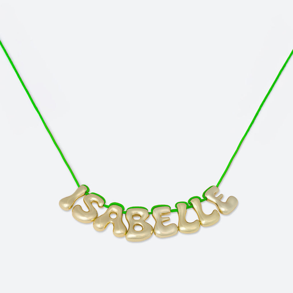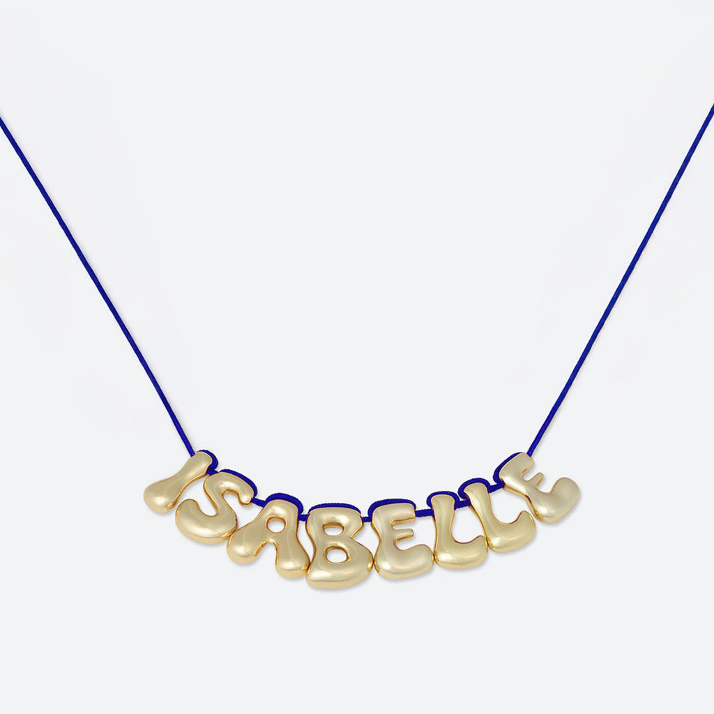 COLLIER AVEC HUIT PETITES LETTRES DORÉES, MONTÉES SUR UN CORDON AJUSTABLE.
