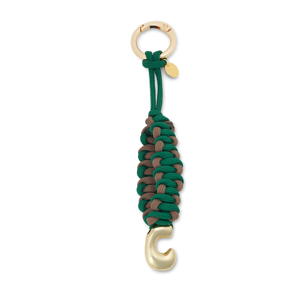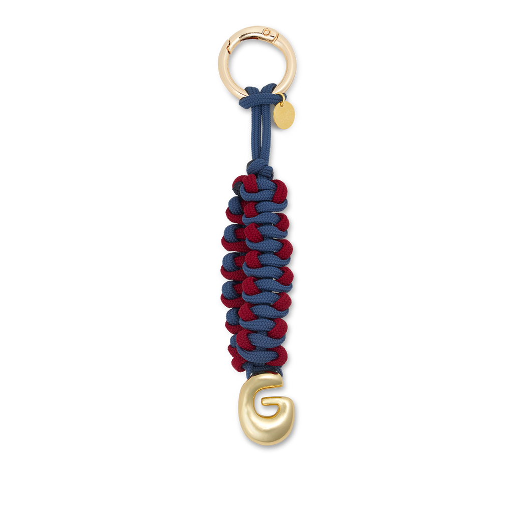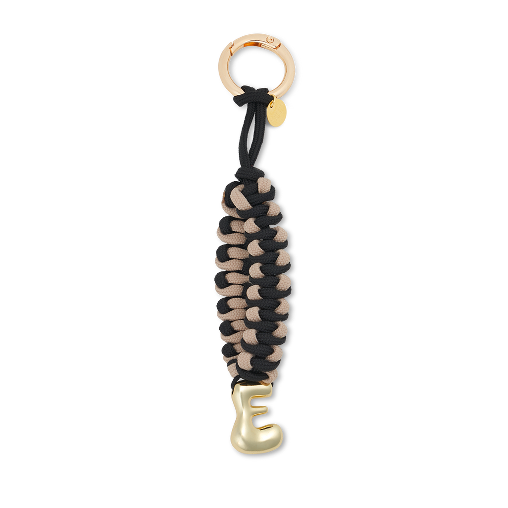 Ce bijou de sac est disponible avec une lettre doré ou argenté, montée sur un cordon tressé avec un choix de 14 coloris.