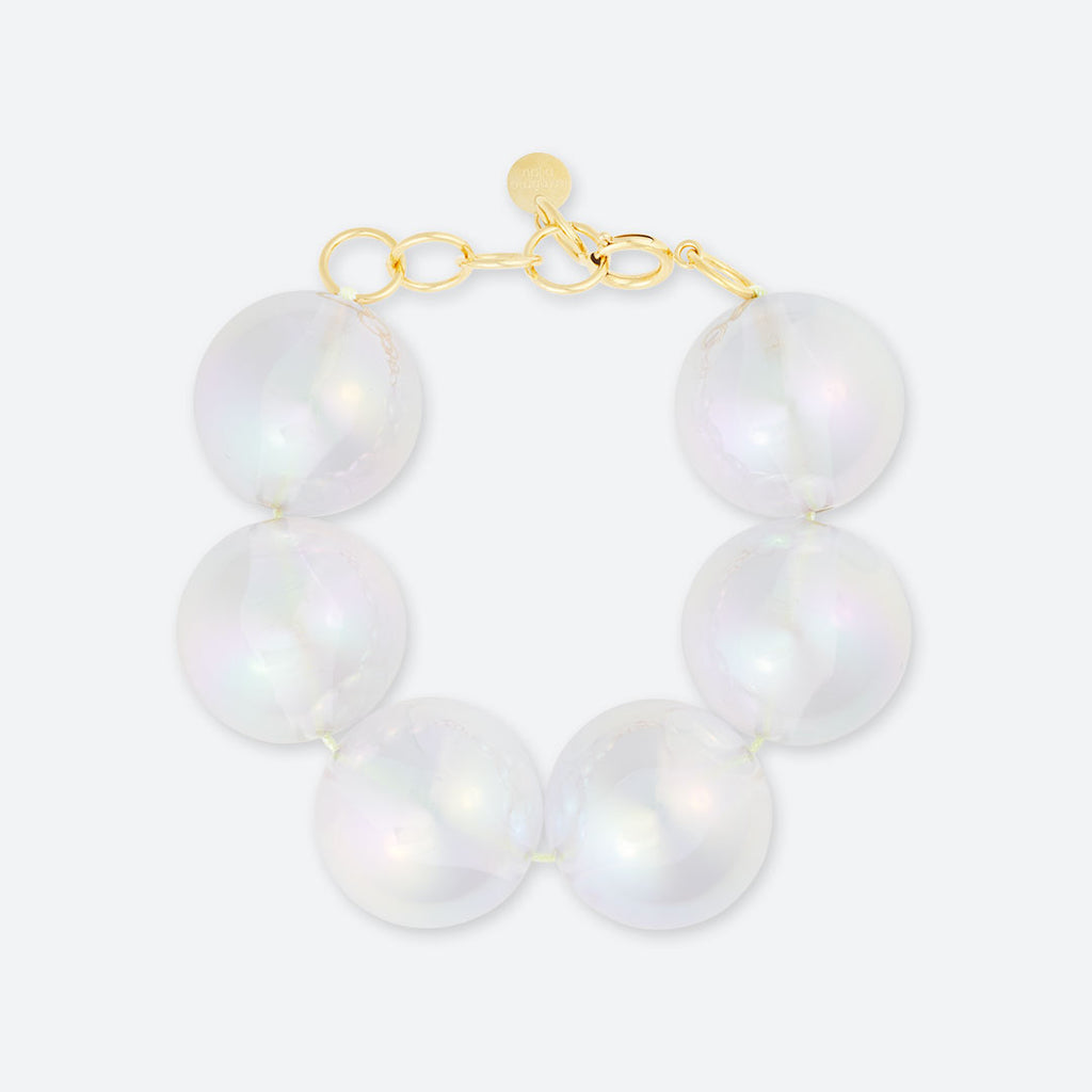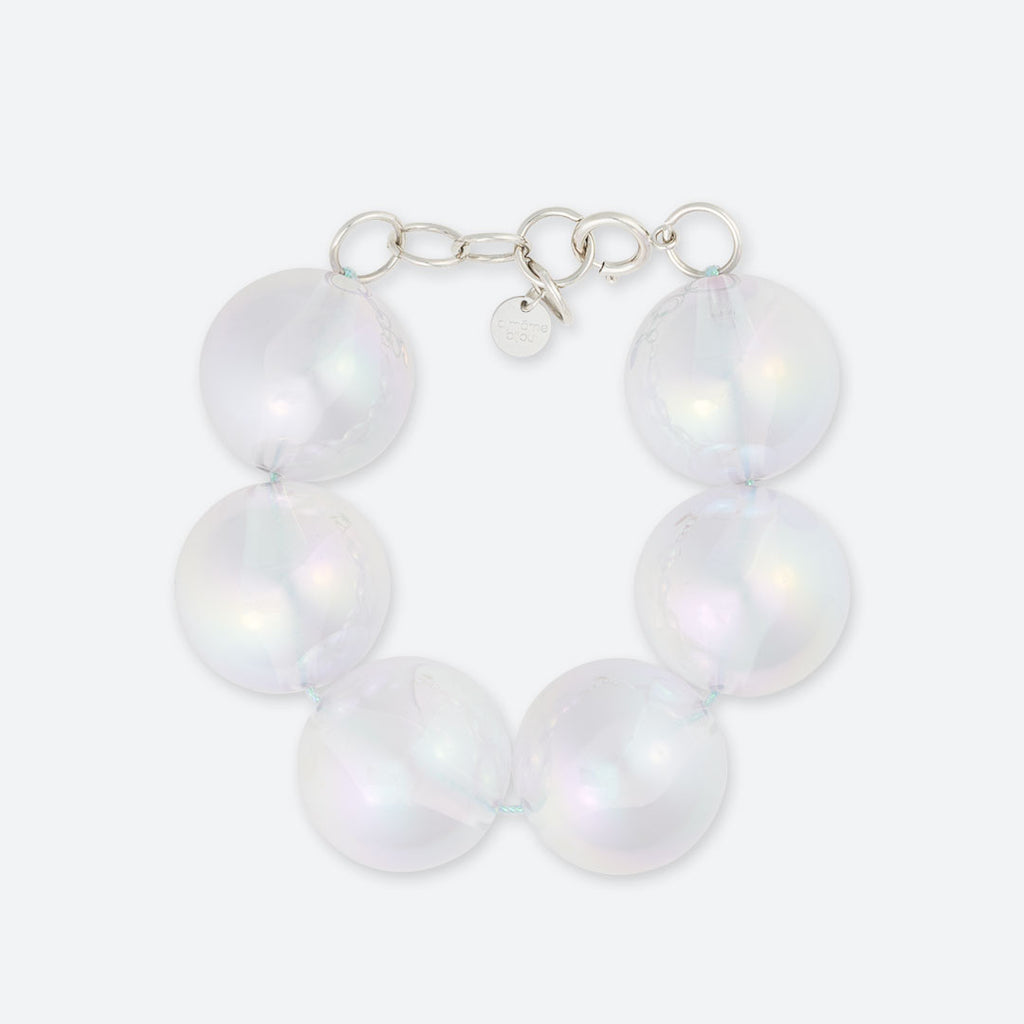 Perles en résine irisée, légères et incassables.