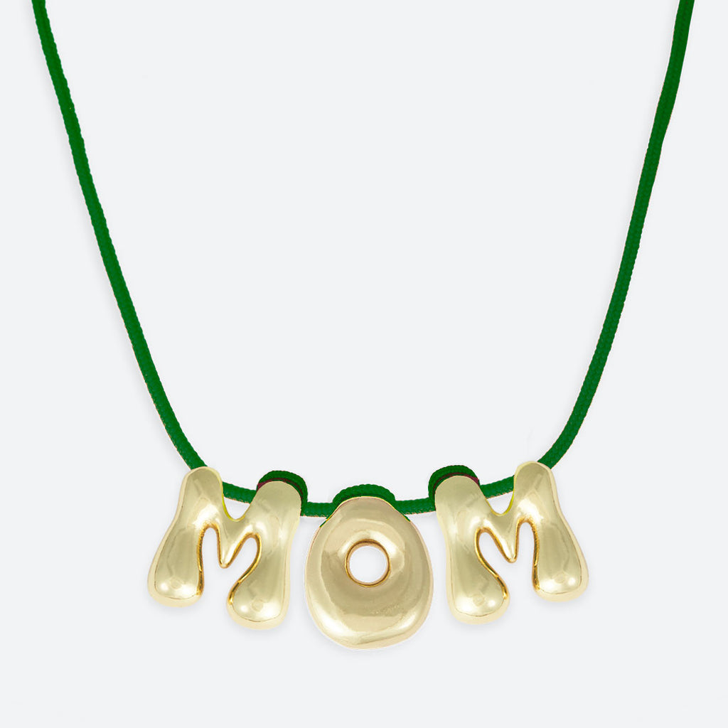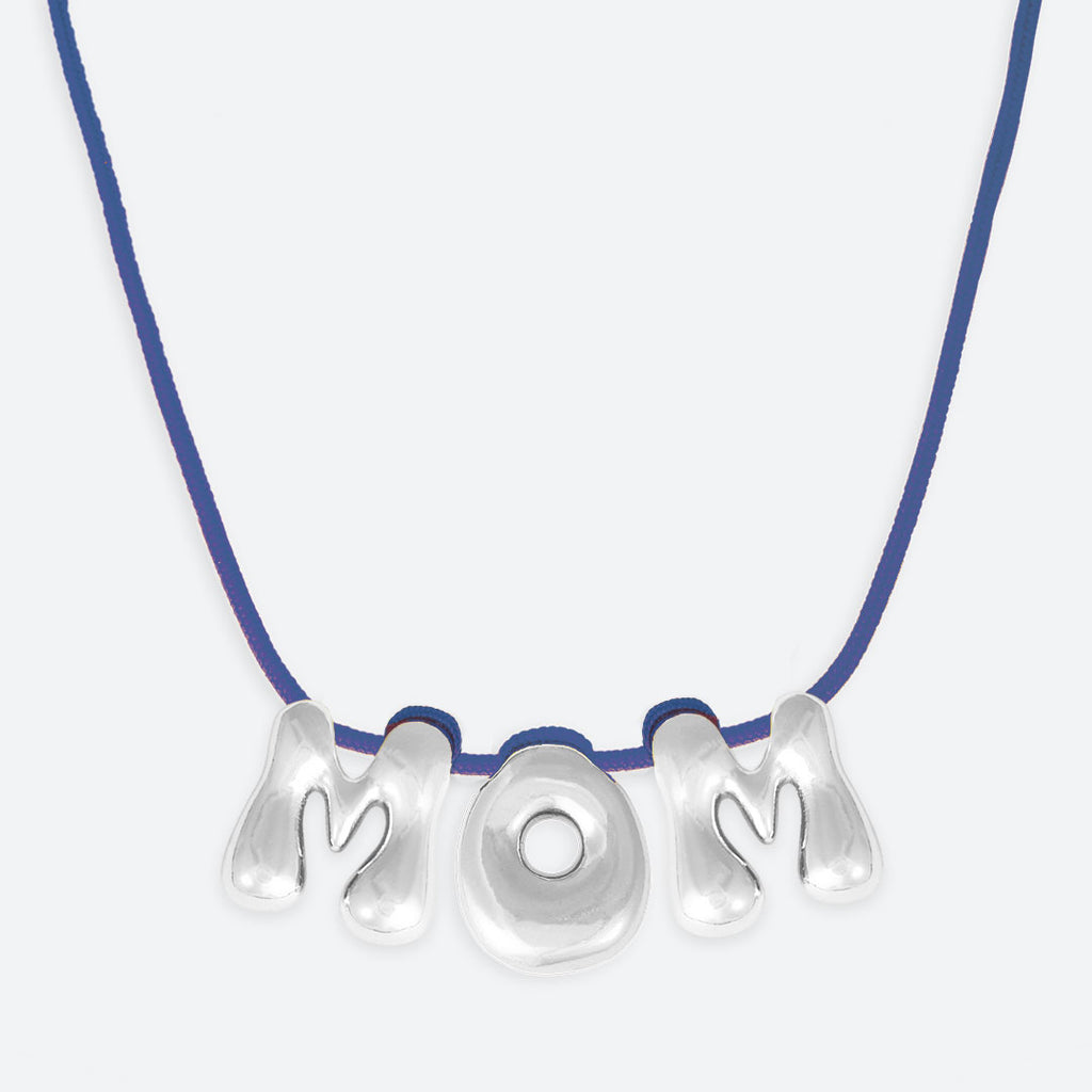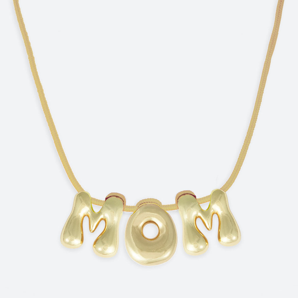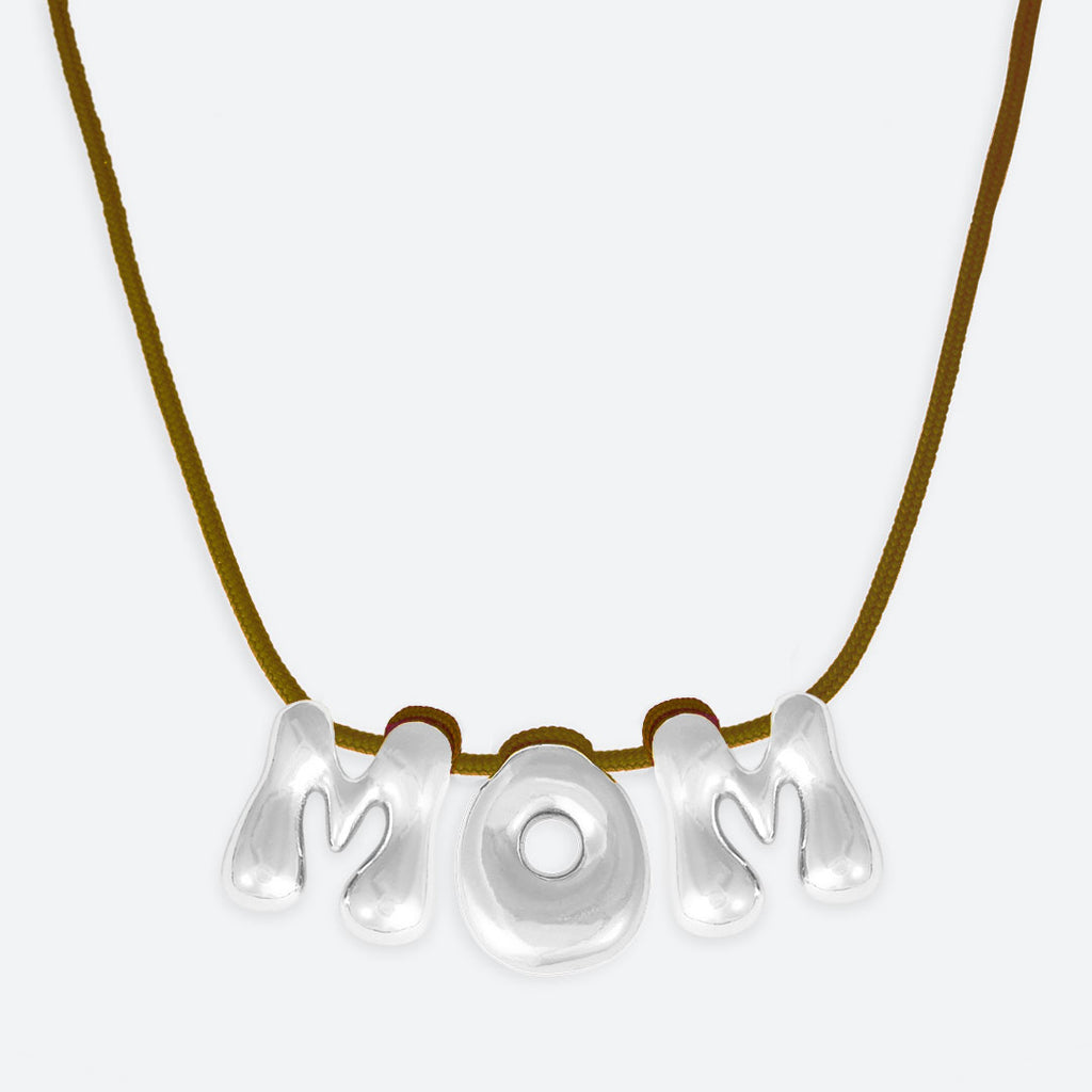 COLLIER AVEC 3 LETTRES EN PLAQUÉ OR OU ARGENT, AVEC LE MOT "MOM" MONTÉ SUR UN CORDON