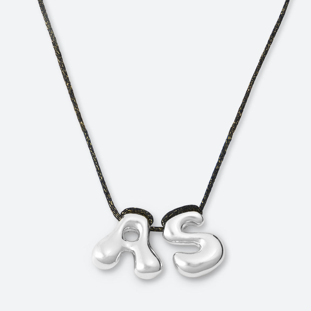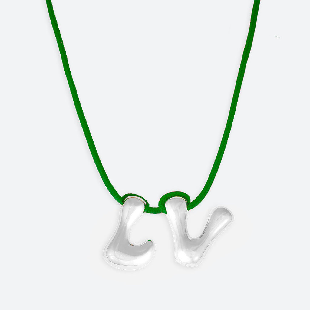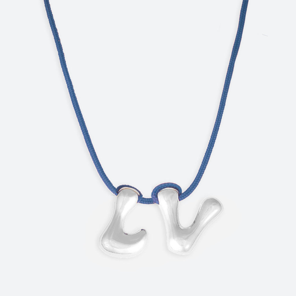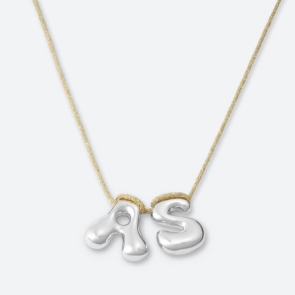COLLIER AVEC 2 LETTRES DORÉES OU ARGENTÉES, MONTÉES SUR UN CORDON